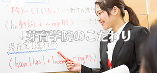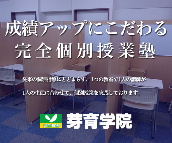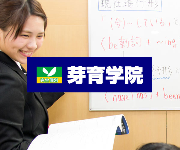 私たち芽育学院は、全員成績アップにこだわる完全個別授業塾です。従来の個別指導にとどまらず、1つの教室で1人の講師が1人の生徒に合わせて、個別授業を実践しており、リアルタイムで質問も可能です。