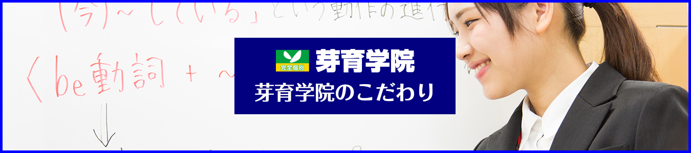 ひとりの講師が同時に指導する生徒の数は少なければ少ないほど 手厚い指導ができるのは当然のことです。 芽育学院は、講師1人に生徒1人の『完全個別授業塾』です。 同じ個別塾でも、従来のシステムでは、講師が生徒の隣に座るスタイルが大半です。 このスタイルでは生徒にノートを取る習慣が生まれません。つまり、学習においてもっとも大切な『自ら手を動かして理解する』という経験が不足するのです。 当学院は、個別指導でありながら、授業スペースは写真のような『小さな教室』にしました。 これにより個別塾の手厚さと集団塾の厳しさを併せ持つ『完全個別授業塾』ができるのです。